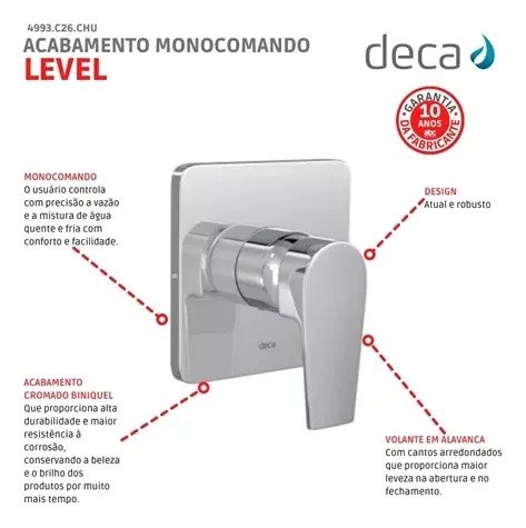Acabamento Monocomando de Chuveiro Deca Level 4993.C26 - Cromado