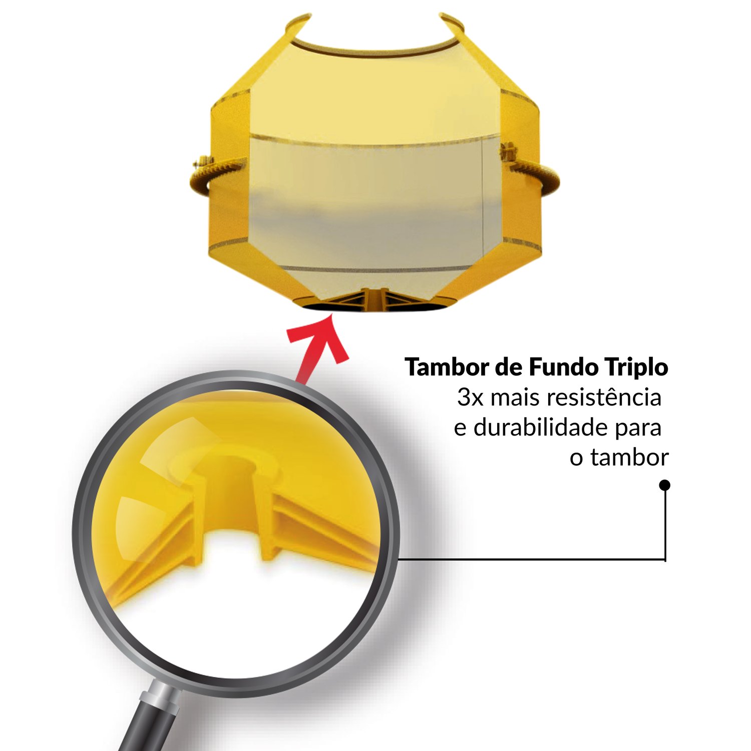 Esta betoneira se destaca pela sua construção de alta qualidade. O tambor é estampado em chapa de aço especial, contando com duas pás misturadoras para garantir a consistência perfeita do seu material. Sua pintura eletrostática oferece alta resistência a intempéries, prolongando a vida útil do equipamento, e os componentes em ferro fundido asseguram maior durabilidade.