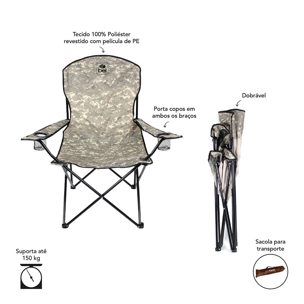 Cadeira Dobravél Araguaia Comfort Max com Braço e Porta Copo Bel 17000
