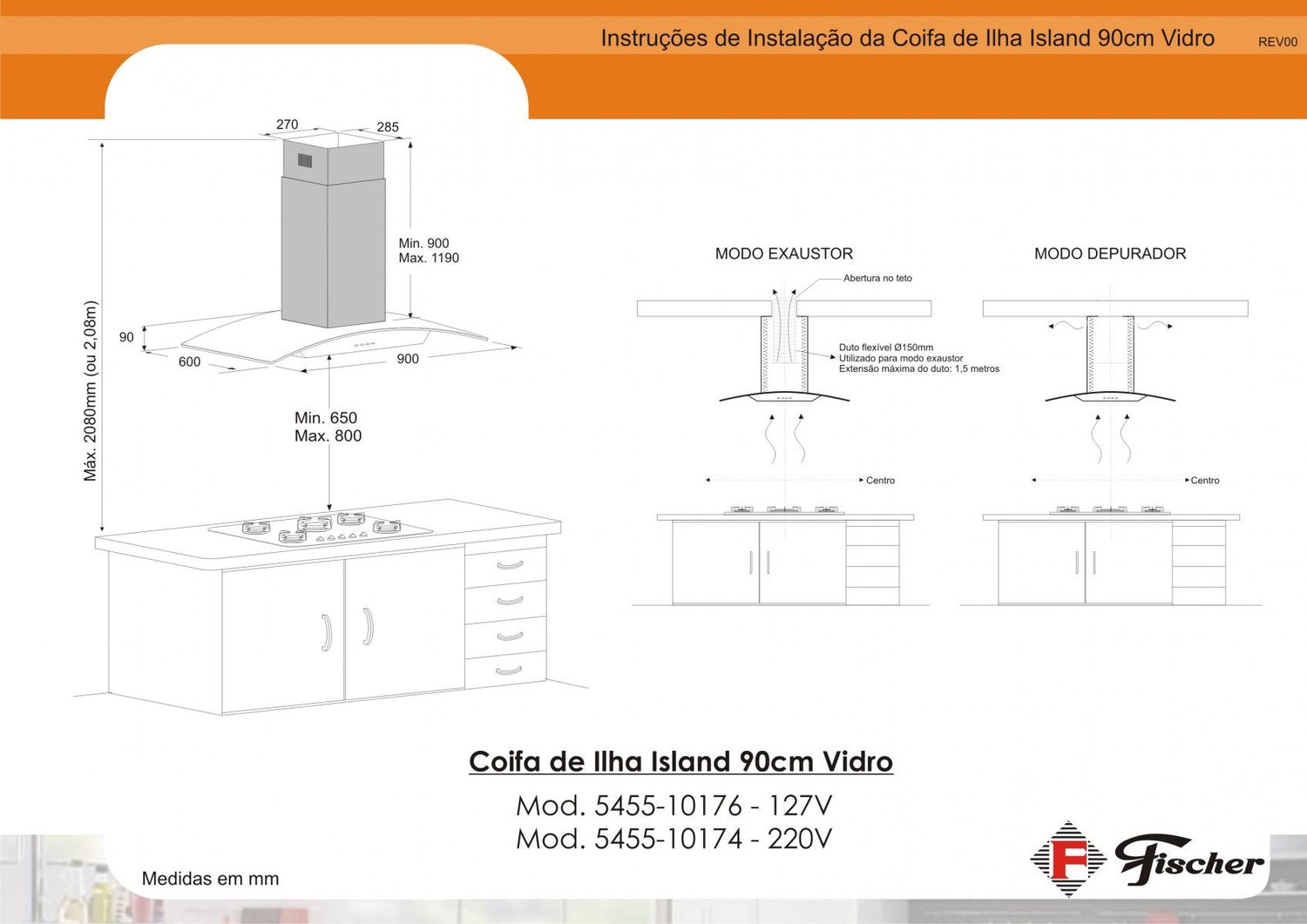 A Coifa Ilha Island Fischer oferece a máxima eficiência na purificação do ar, garantindo um ambiente mais agradável e livre de odores na sua cozinha.