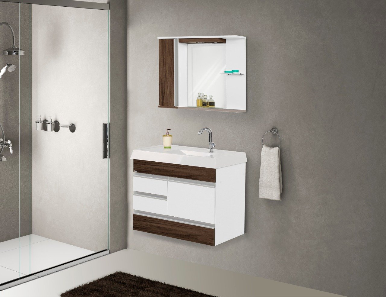 Conjunto de Balcão Suspenso Napole Castaine Rorato 80 cm
