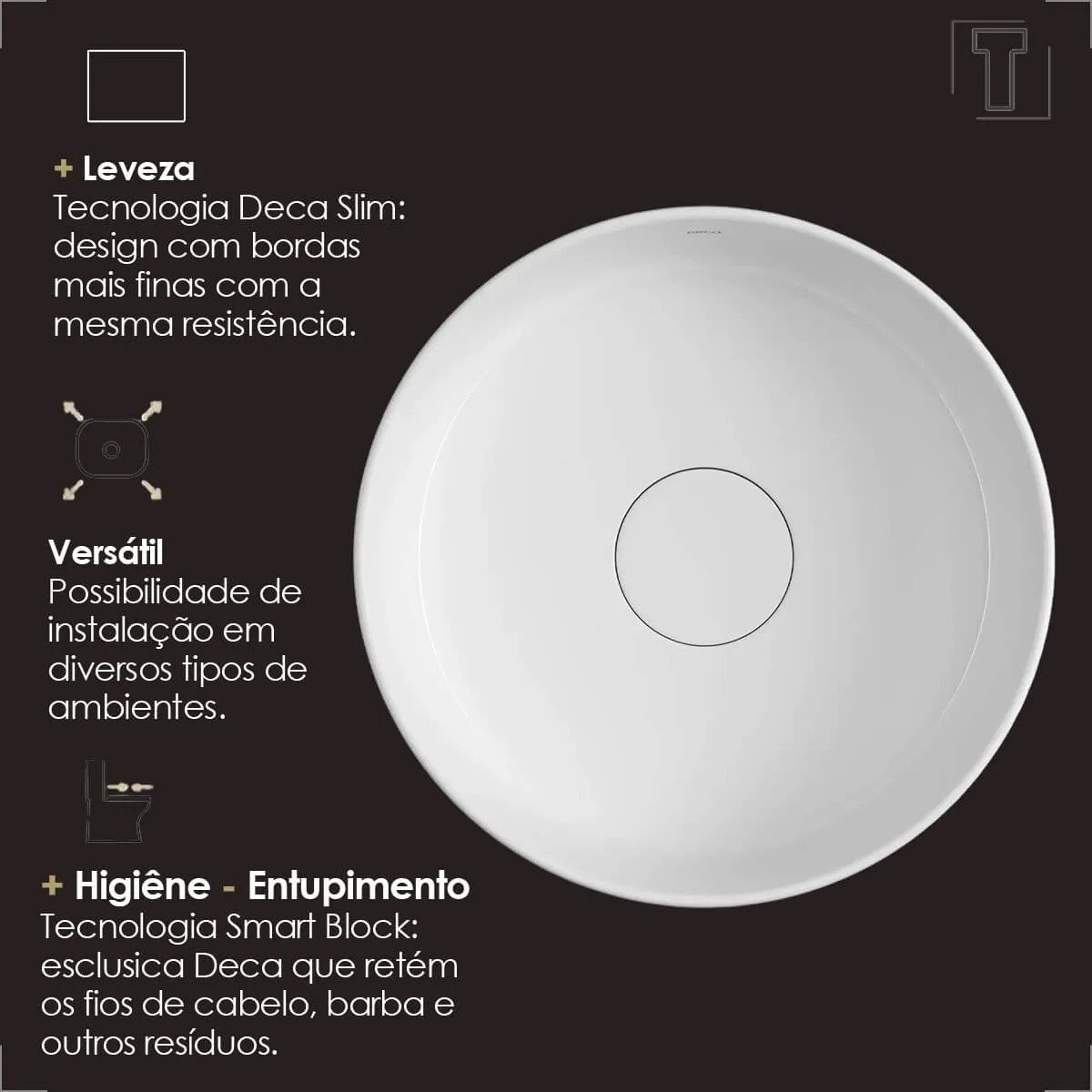 A Cuba de Apoio Redonda Slim da Deca é perfeita para quem busca aliar design sofisticado, tecnologia avançada e praticidade no ambiente. Com seu visual flutuante e bordas finas, ela traz um toque moderno e elegante para banheiros e lavabos de todos os estilos.