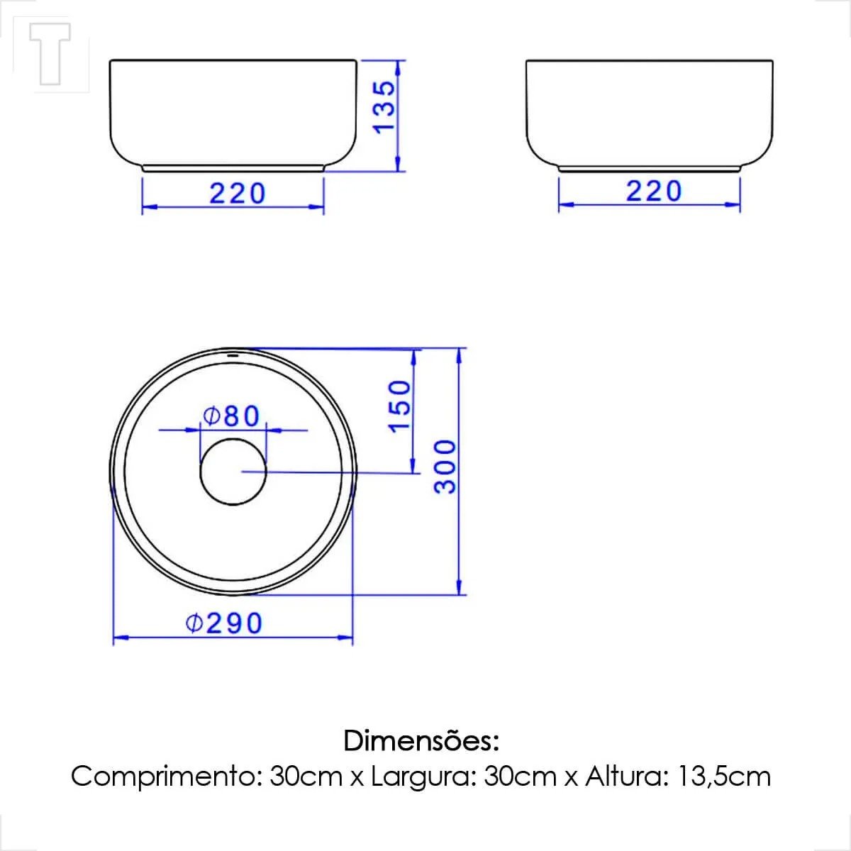 Modelo: L.12030.17 – Cuba de Apoio Redonda Slim 30cm