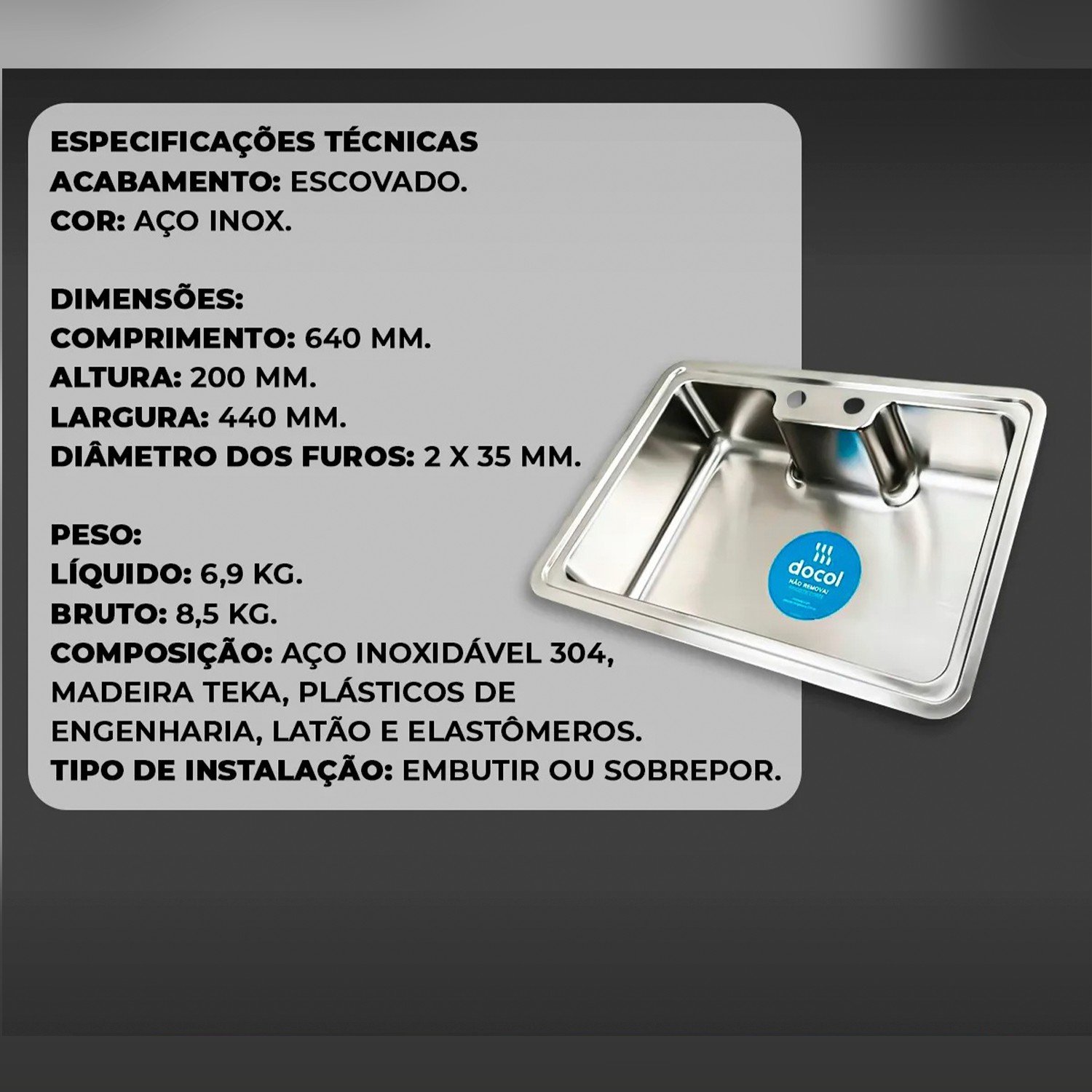 Acabamento: Escovado
