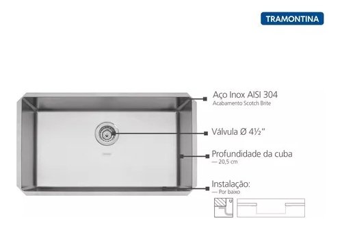 Cuba Inox De Embutir Quadrum 70x40 Undermount Tramontina Cor Scotch Brite