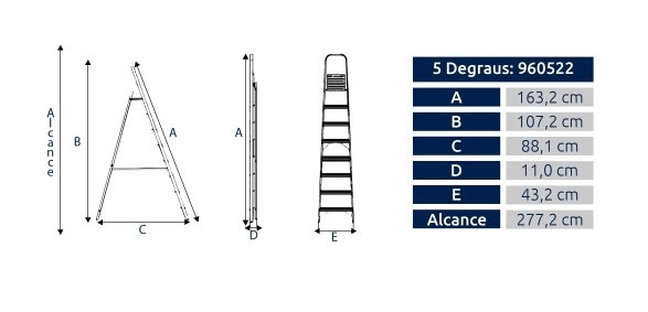 Escada de Alumínio Residencial Alumasa 5 Degraus