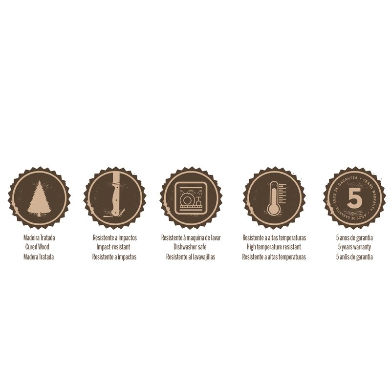 O cabo de madeira tratada Polywood é resistentes à impactos e alta temperaturas garantindo maior resistência e durabilidade.