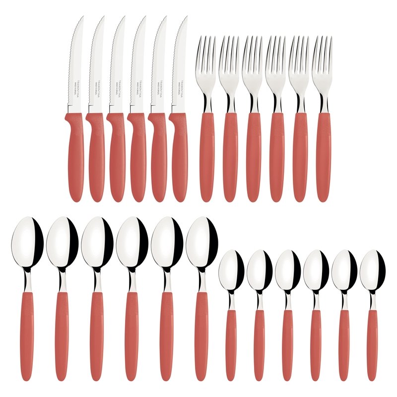 Faqueiro Ipanema Lâmina Aço Inox e Cabo Goiaba com Pote Plástico Tramontina 24 Peças 23399/091