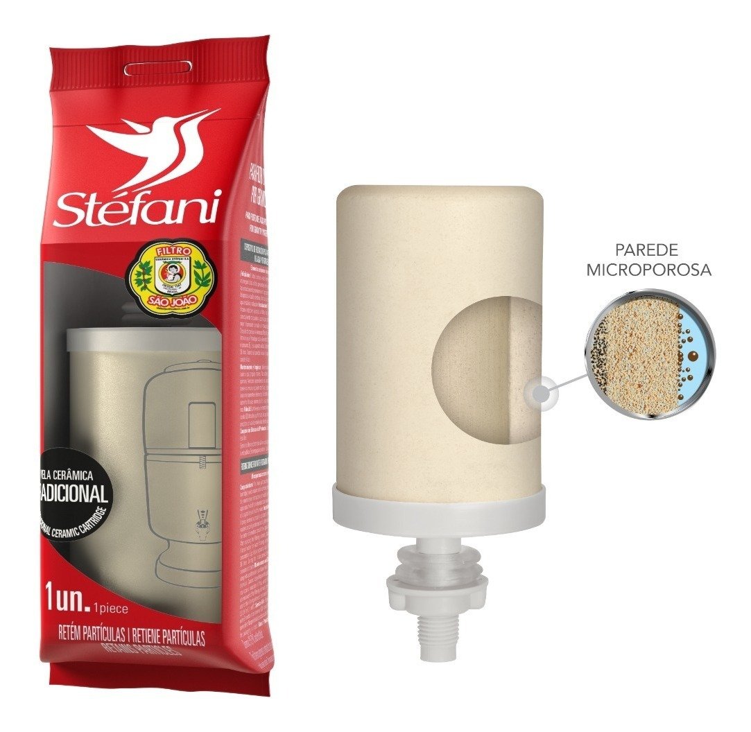 Contêm: 01 Filtro São João Tradicional 6 Litros + 1 Vela Tradicional + 1 Boia + 1 Torneira Clic Marrom Características: O São João foi o primeiro filtro a ser fabricado pela Cerâmica Stéfani, em 1947, mantendo suas características e tradição. E depois de todos esses anos no mercado, ele já marcou presença em pelo menos três gerações. E toda essa simpatia que o público tem pelo Filtro São João se deve à sua qualidade, durabilidade e economia que o acompanham desde o seu nascimento. • Durabilidade e qualidade comprovadas. • Água naturalmente fresca e saudável. • Feito à mão em argila especial. • Reduz impurezas presentes na água. • Equipado com Vela Tradicional e Torneira Clic. Informações Técnicas Capacidade: 6 Litros Qtd. Velas: 1 Altura: 58.0 cm Diâmetro: 24.0 cm Peso: 9.10 Kg