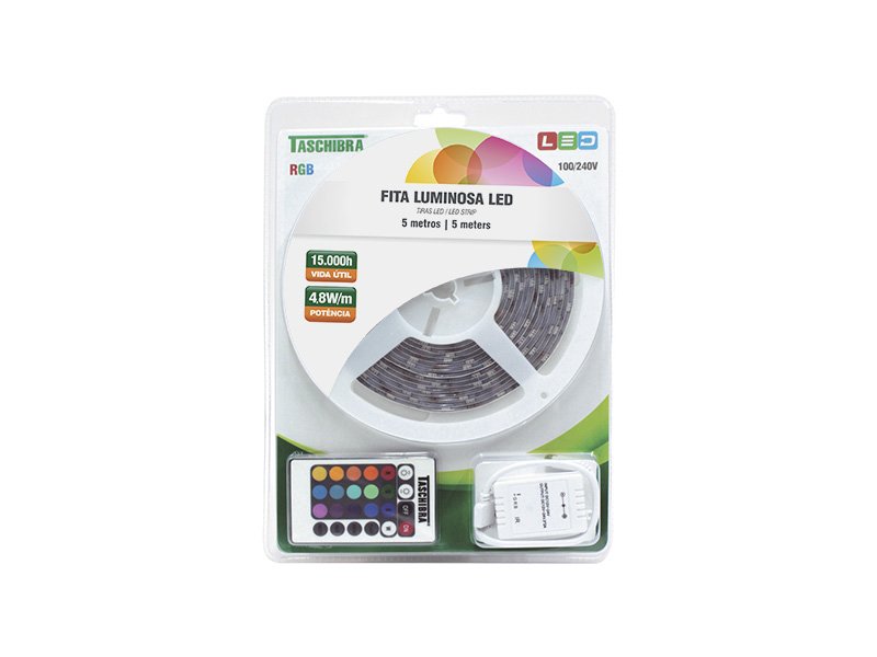 Fita LED com Fonte Autovolt Taschibra 30 LEDs 4,8W 5 Metros: Crie Ambientes Incríveis com Cores e Luz!