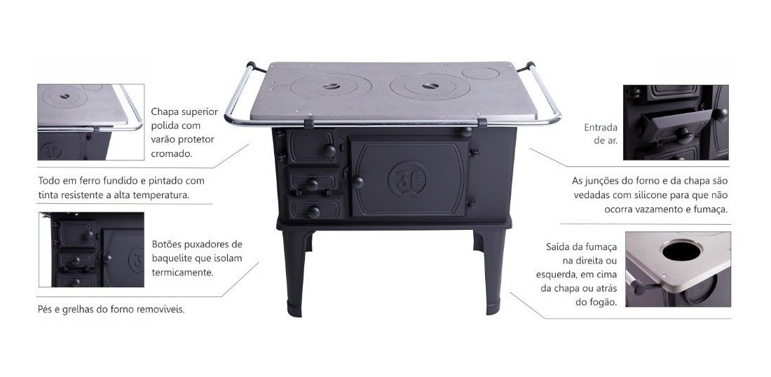 Fogão a Lenha Ferro Fundido Lado Esquerdo N°01 3E