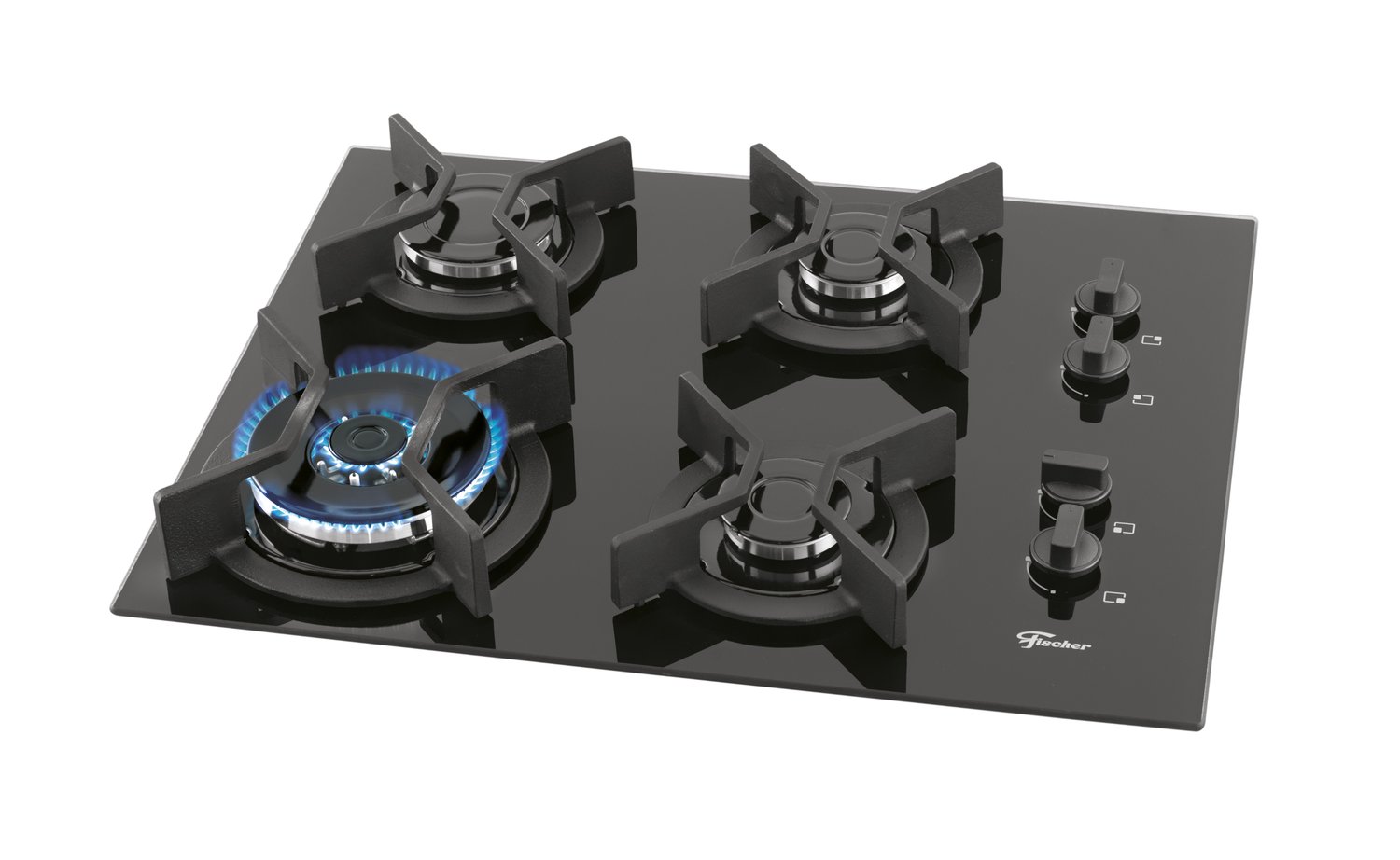 Fogão Cooktop Fischer Infinity 4 Queimadores Mesa de Vidro Preto Tripla Chama: Tecnologia e Design para Sua Cozinha!