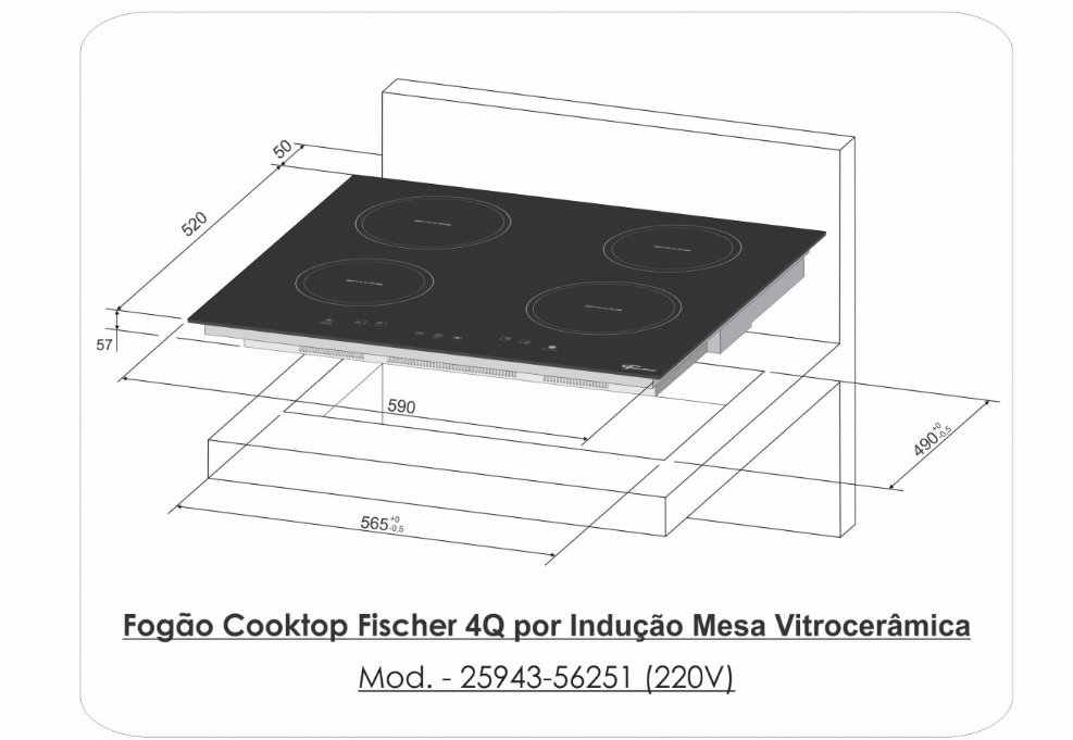 Fogão Cooktop por Indução com Mesa Vitrocerâmica 4 Queimadores Fischer