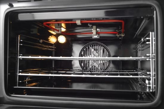 A segurança e a facilidade de limpeza são prioridades. A resistência inferior é embutida, tornando o produto mais seguro durante o uso e fácil de limpar. A porta com vidro duplo impede a fuga de calor, garantindo segurança e economia de energia. O revestimento interno EasyClean é liso e esmaltado, não absorvendo a gordura e facilitando a higienização.