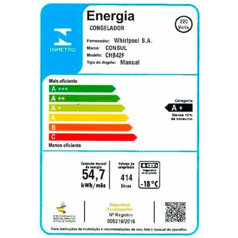 Eficiência Energética: Classificado como A, esse freezer é super econômico, ajudando a reduzir os custos de energia.