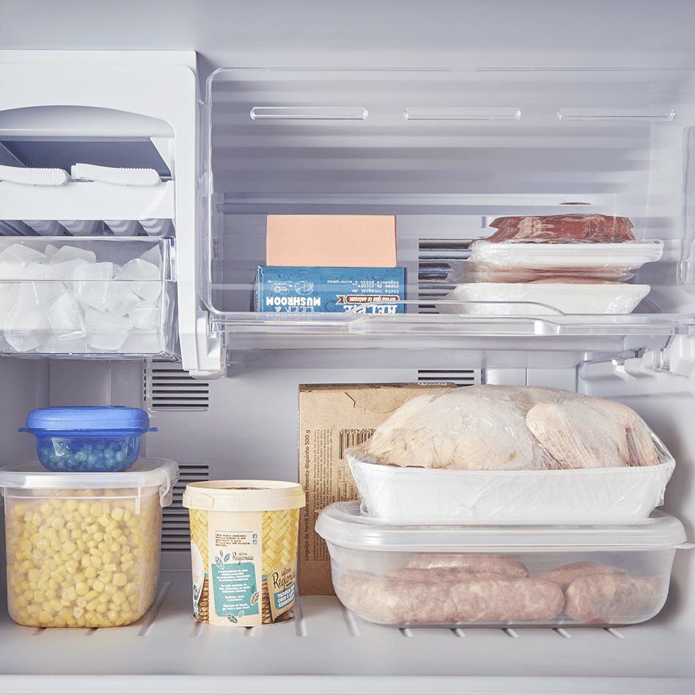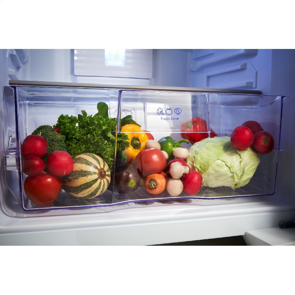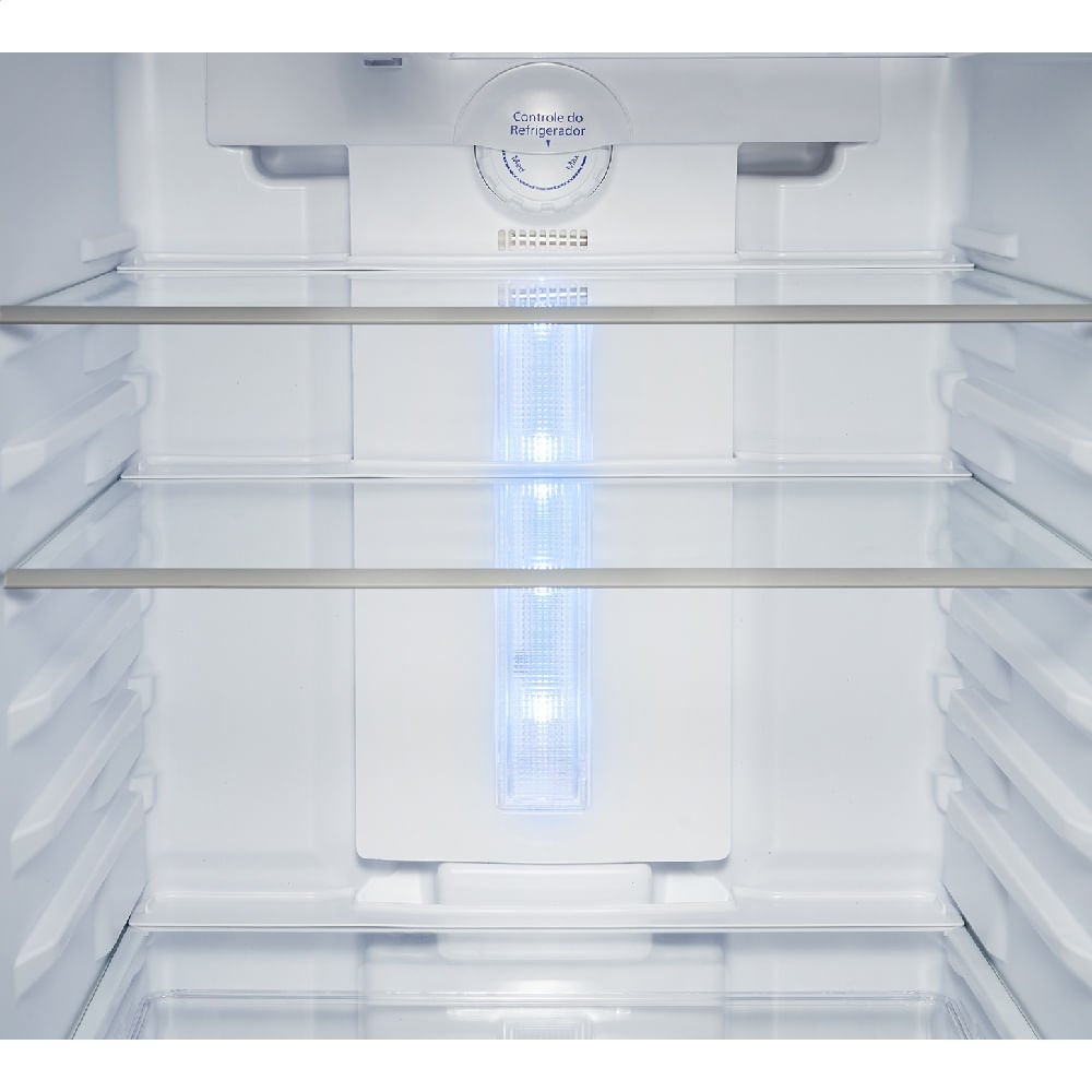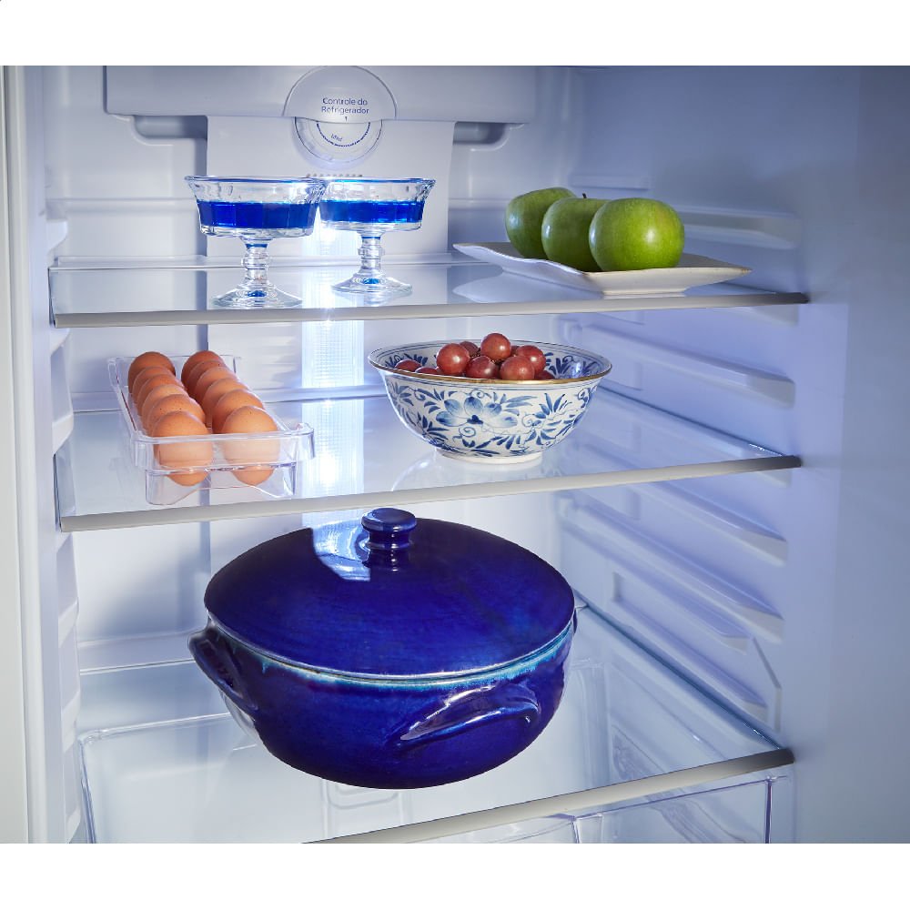 Espaço Amplo no Freezer: Com um freezer de até 102 litros, a geladeira oferece prateleiras profundas, ideal para armazenar potes de sorvete de 2 litros e outros alimentos congelados, garantindo espaço de sobra.