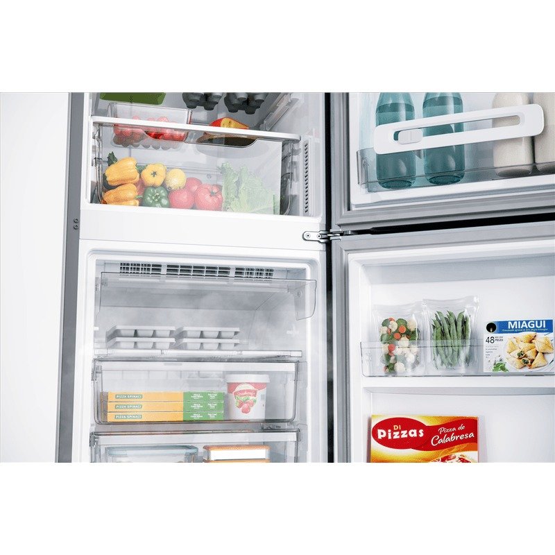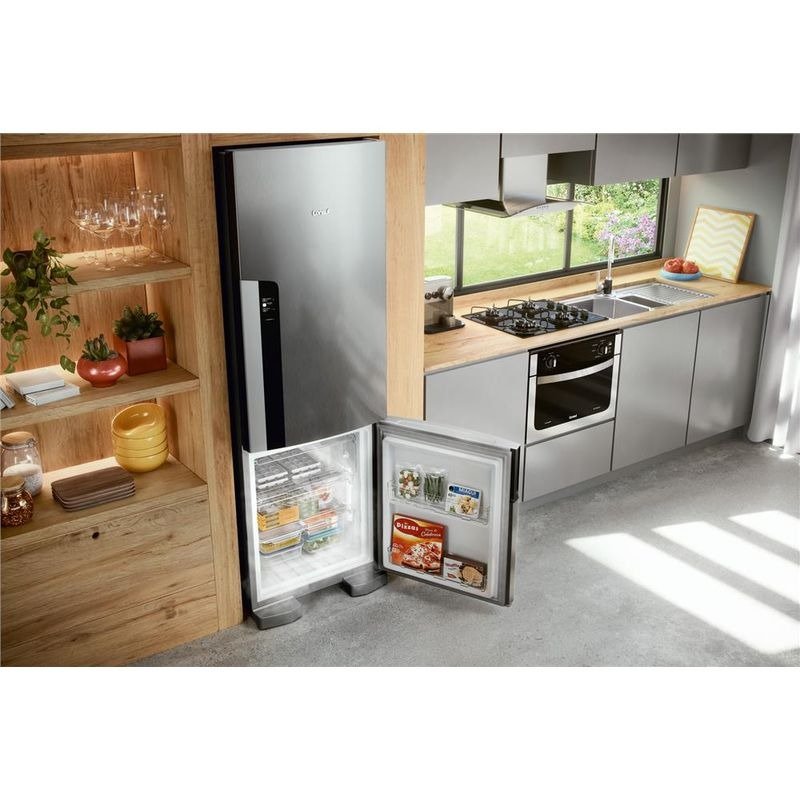 - Freezer embaixo: Tenha acesso mais prático aos alimentos refrigerados sem a necessidade de abaixar para pegá-los. Essa configuração otimiza seu uso diário, deixando os itens mais acessados na altura ideal.