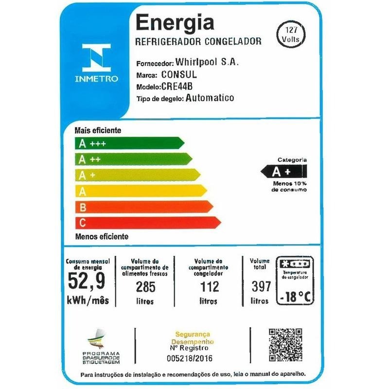 Especificações Técnicas da Geladeira Frost Free Duplex Evox Consul CRE44BK
