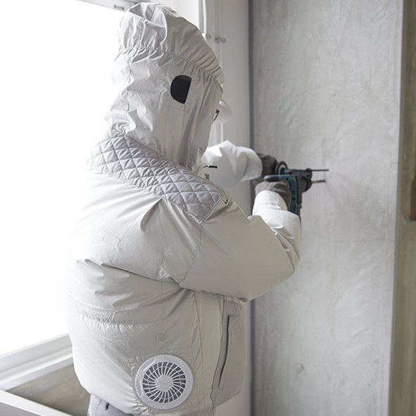 desmontáveis para a lavagem do casaco.Os ventiladores repartem a circulação do ar pelo corpo para evaporar o suor de uma forma eficaz mantendo o corpo fresco. Possui três modos de ventilação: modo turbo, alto, médio,baixo, dependendo da exigência do utilizador. No modo turbo premindo o botão o casaco vai ventilar rapidamente durante um minuto, após isso, o casaco volta ao seu funcionamento normal. Tecido lavável, pode ser lavado na máquina. Possui 5 bolsos, 2 no peito, 2 na cintura e um no interior.