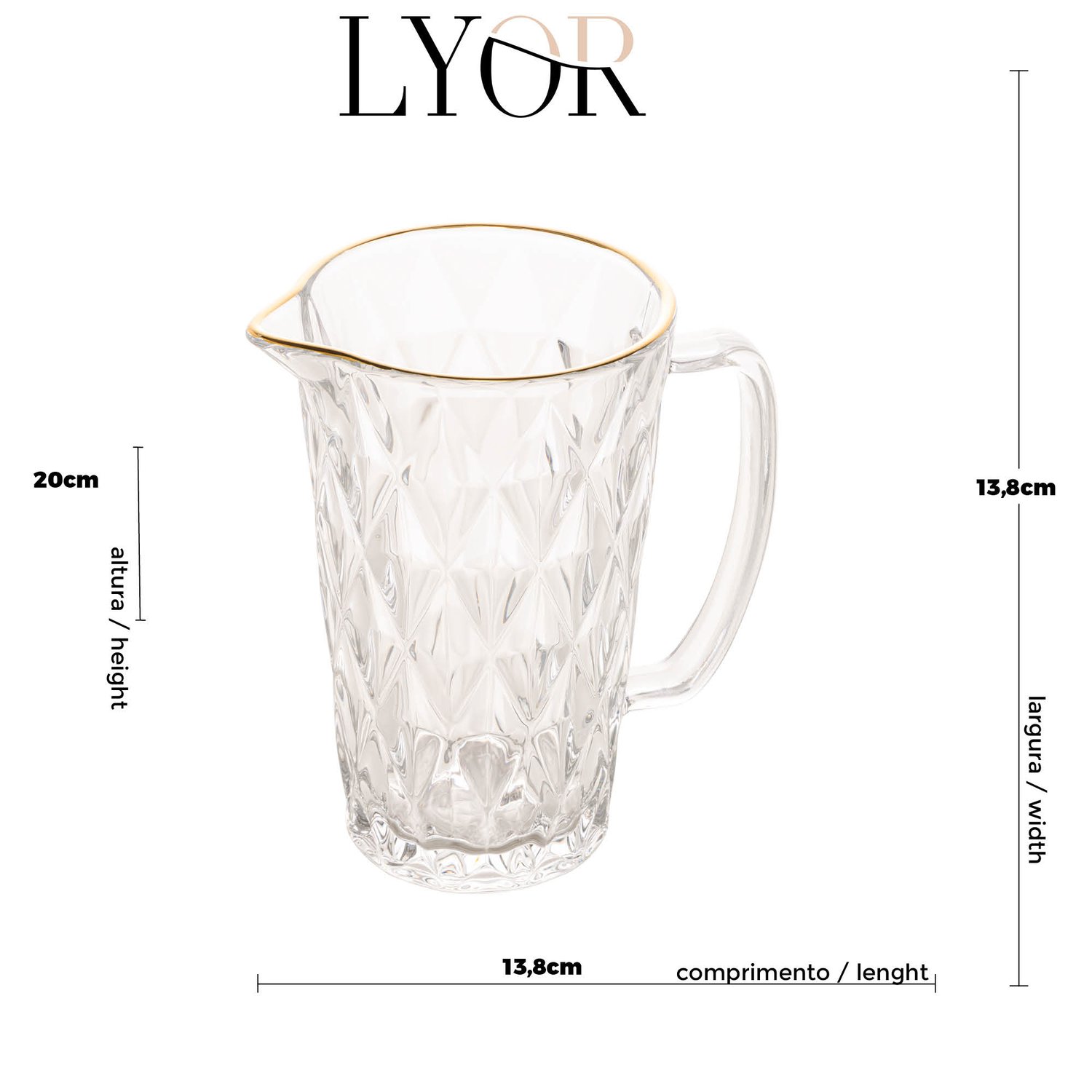 Jarra de Vidro Diamond com Fio de Ouro Lyor 1 litro 1431
