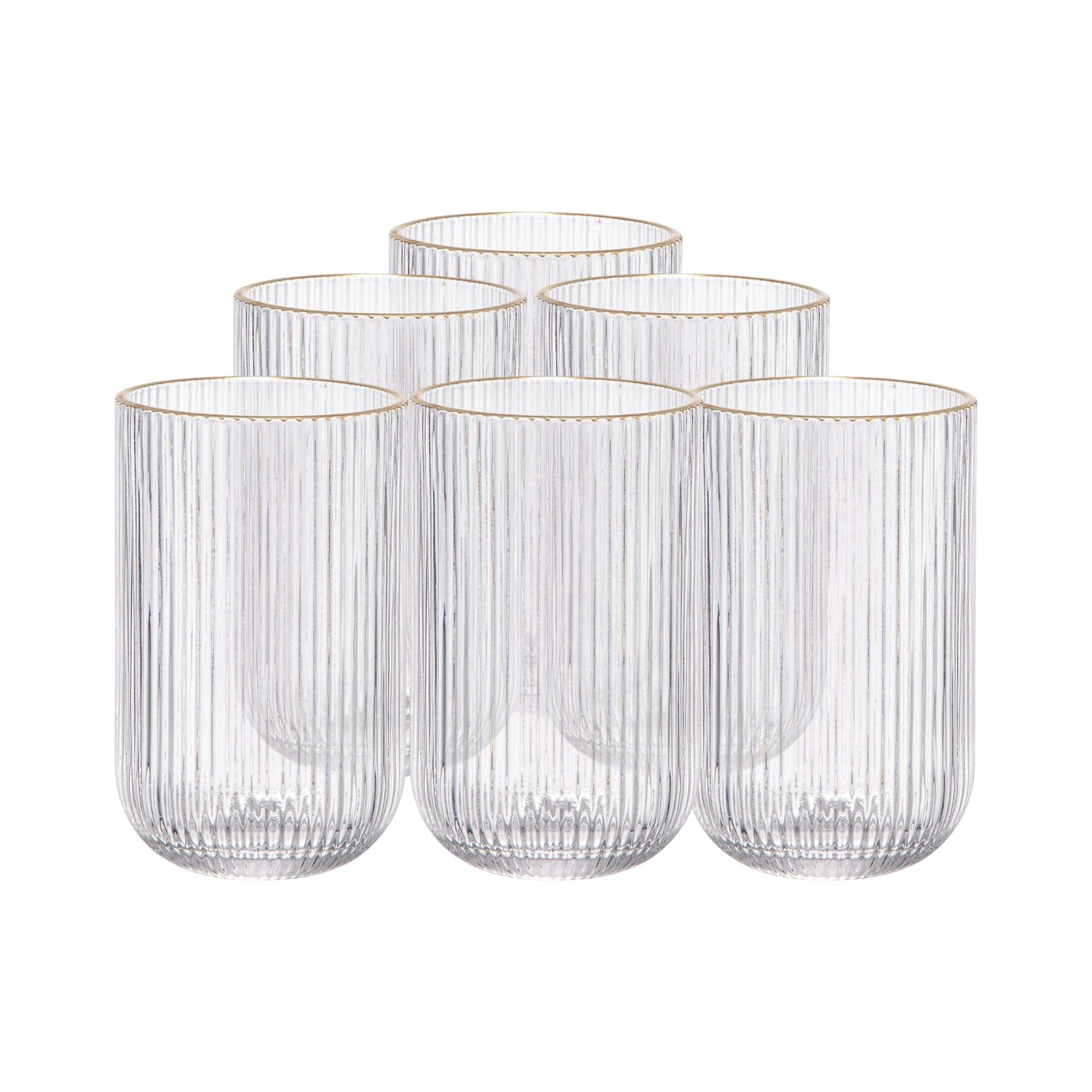 Jogo de Copos Cameratta Fullfit 425ml – 6 Peças em Cristal Ecológico com Borda Dourada