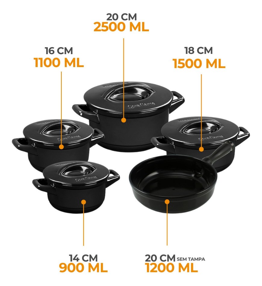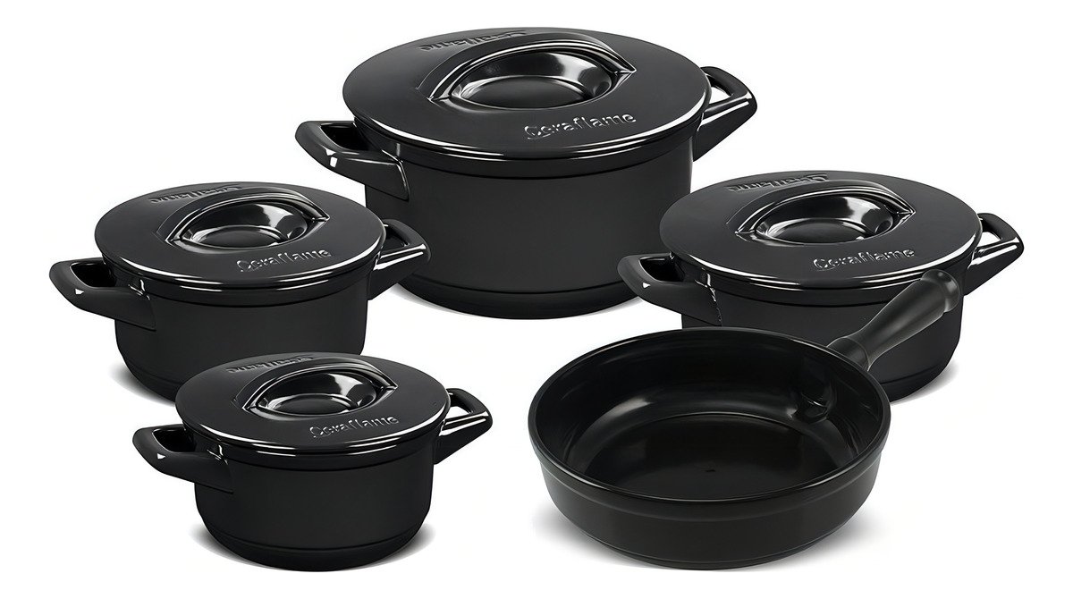 Jogo De Panelas Cerâmica Ceraflame Duo+ Smart 5 Peças Preto