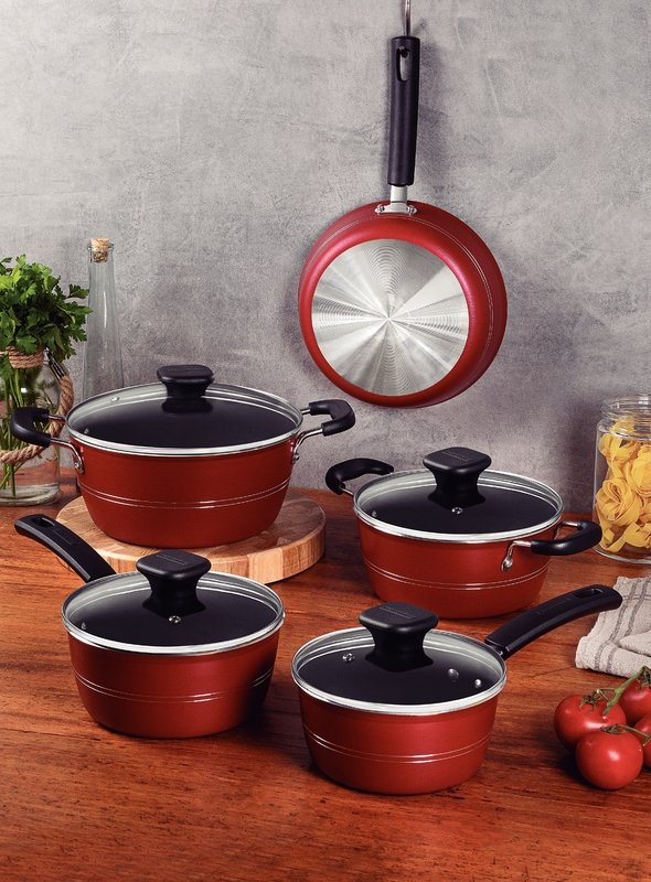 Jogo de Panelas Sicília em Alumínio Vermelho Tramontina 5 peças 20499/715