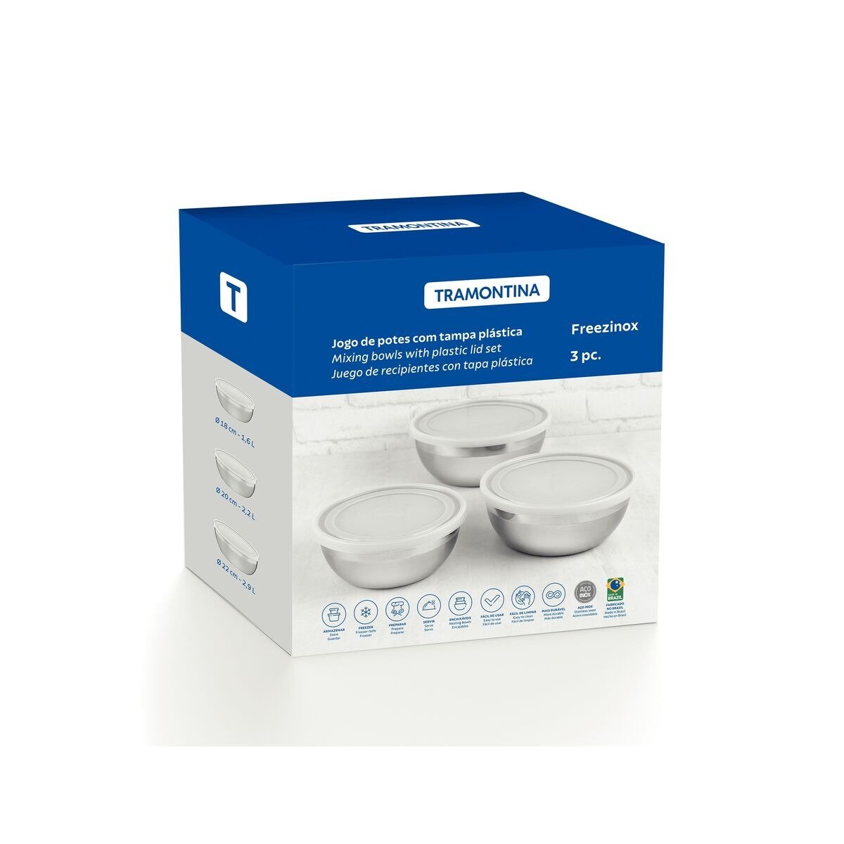 Jogo de Potes Freezinox Aço Inox com Tampa Plástica Tramontina 3 peças 64220/210