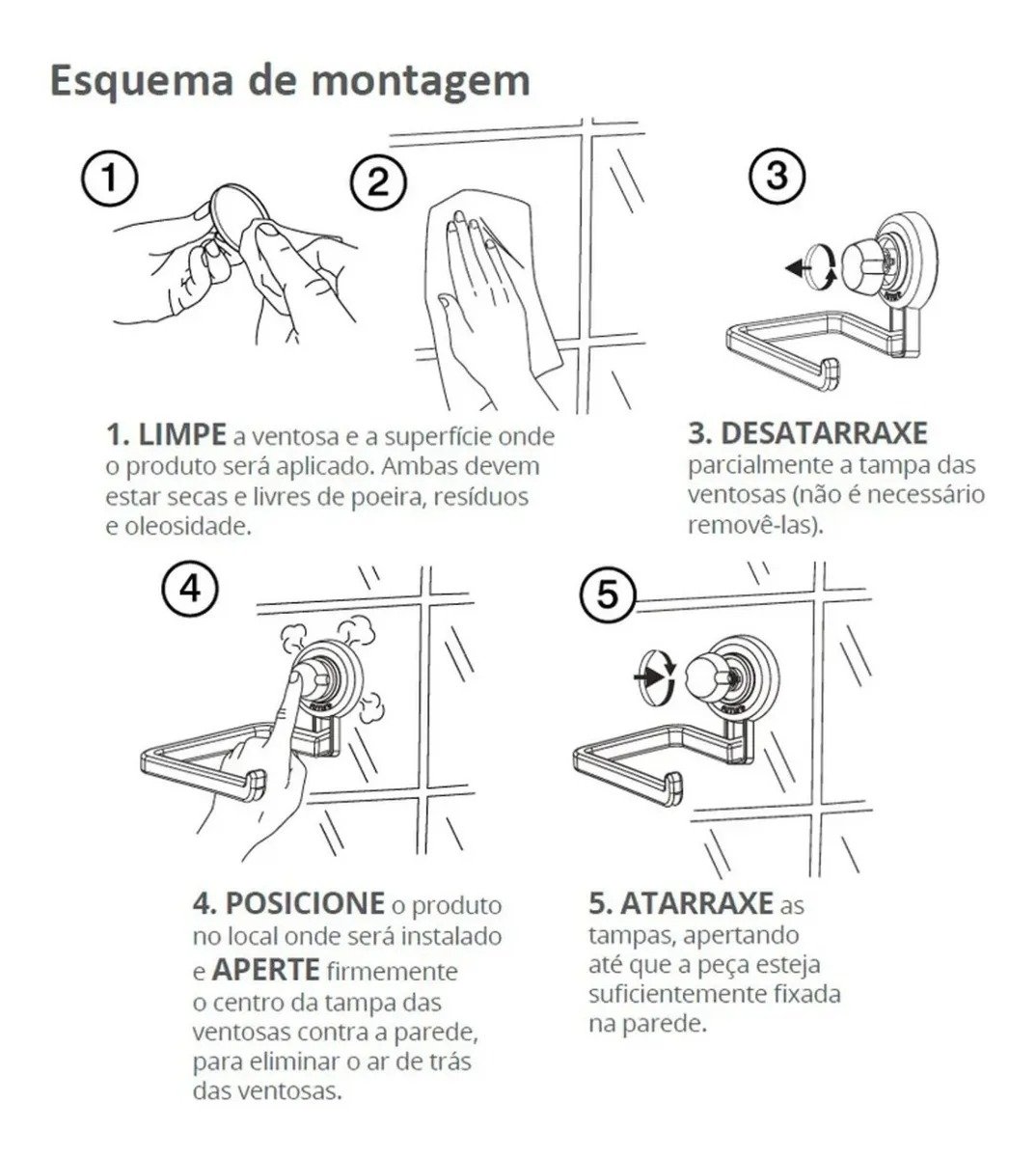 Lembre-se de remover e reaplicar o produto a cada 3 meses para garantir a fixação ideal. Nunca utilize o gancho para acomodar peso superior a 3 Kg ou objetos frágeis e de valor.