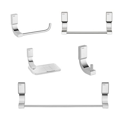 Os acessórios dessa linha entregam um banheiro completo, com versatilidade e harmonia entre as formas de cada peça.