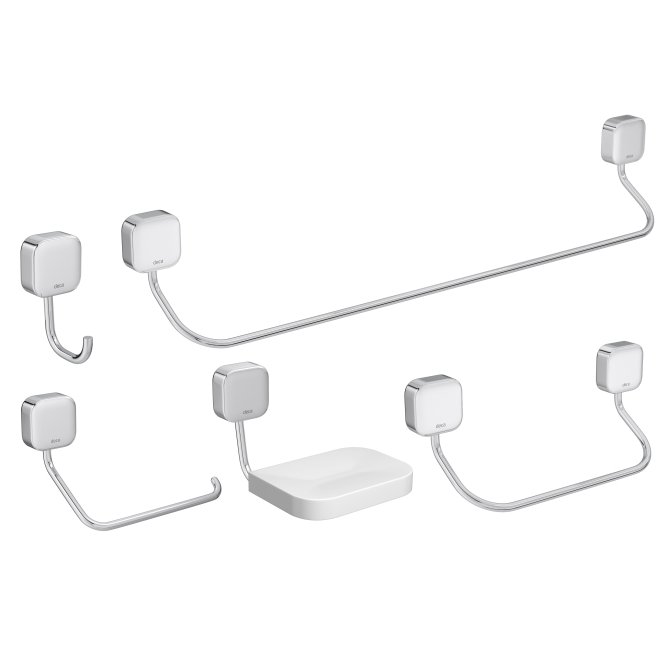 Contém saboneteira, papeleira, porta toalha de rosto, porta toalha barra e cabide