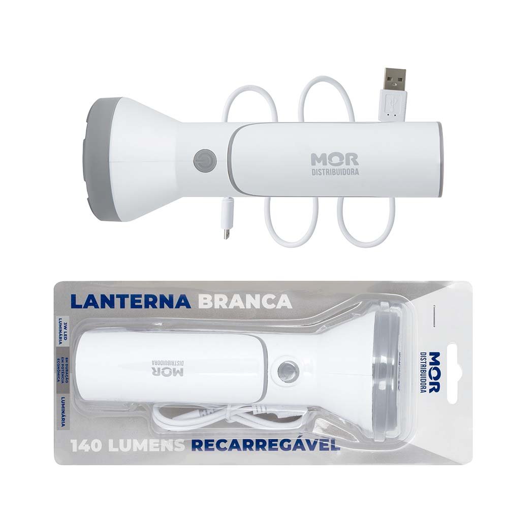 Lanterna Recarregável Branca Mor 140 Lumens 9186