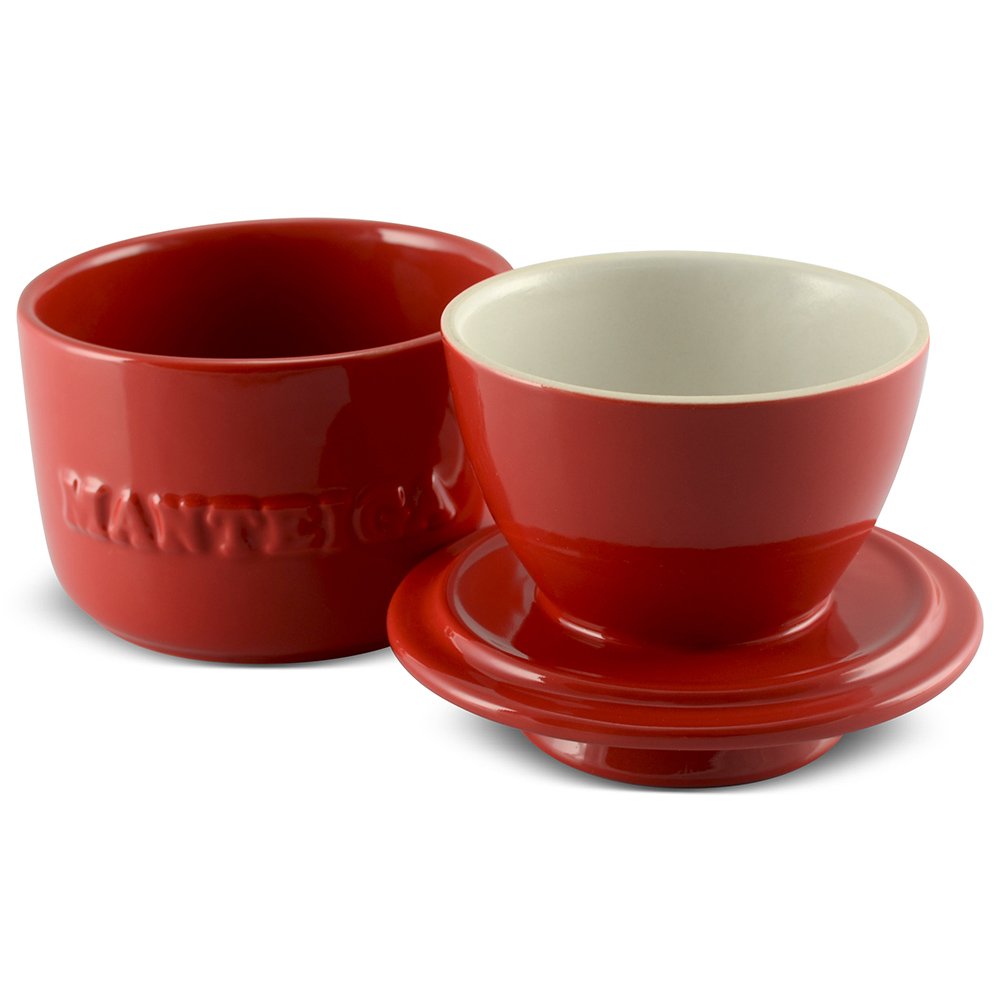 Na vibrante cor vermelha e feita toda em cerâmica vai manter a sua manteiga sempre fresca.