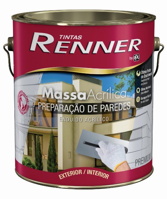 A Massa Acrílica Premium Renner uniformiza, corrige e nivela imperfeições em superfícies de reboco, concreto e superfícies semelhantes. Possui alta resistência ao intemperismo e é fácil de aplicar. Com ótima aderência, seu aspecto cremoso e grande poder de enchimento permitem um melhor acabamento final. A massa tem secagem rápida e é fácil de lixar, sendo indicada tanto para uso em interiores quanto em exteriores.