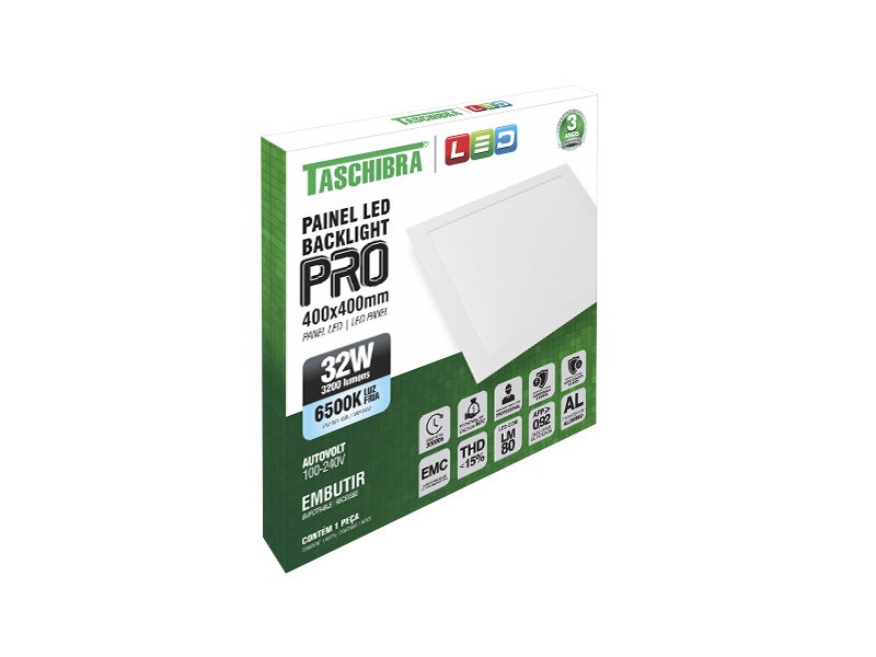 Painel Led Pro Quadrado de Embutir Taschibra 40cm 32w 6500k