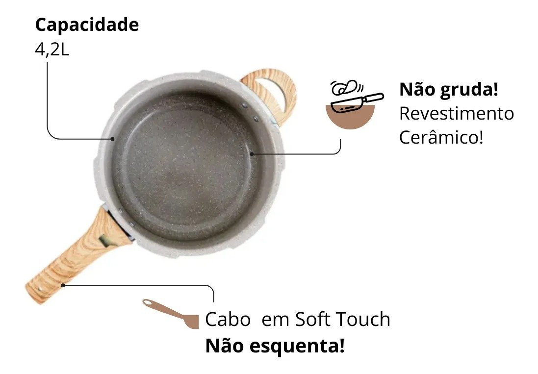 Panela De Pressão Ceramic Life Pressure 4,2l Areia Brinox
