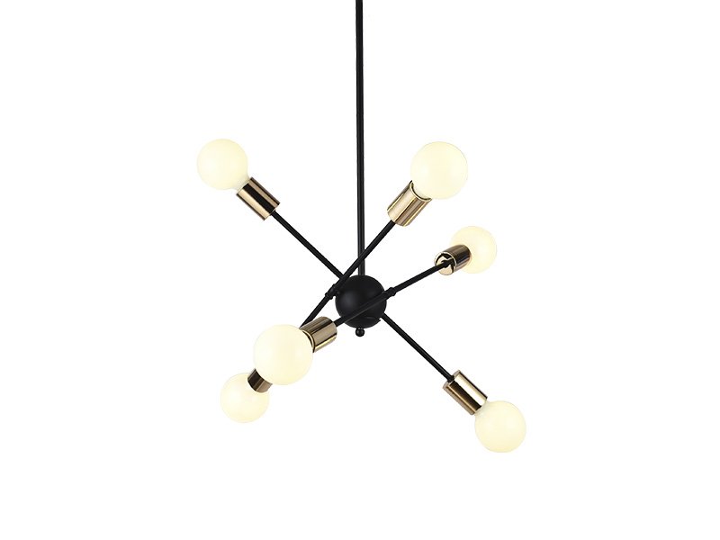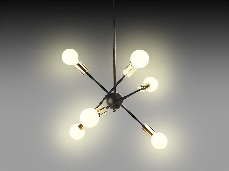 Com seis soquetes E27, suporta lâmpadas de até 40W cada (não inclusas), totalizando até 240W de potência. O cabo de 1,40 metro oferece flexibilidade na instalação, enquanto suas dimensões compactas (520x520x580 mm) trazem presença sem ocupar muito espaço.