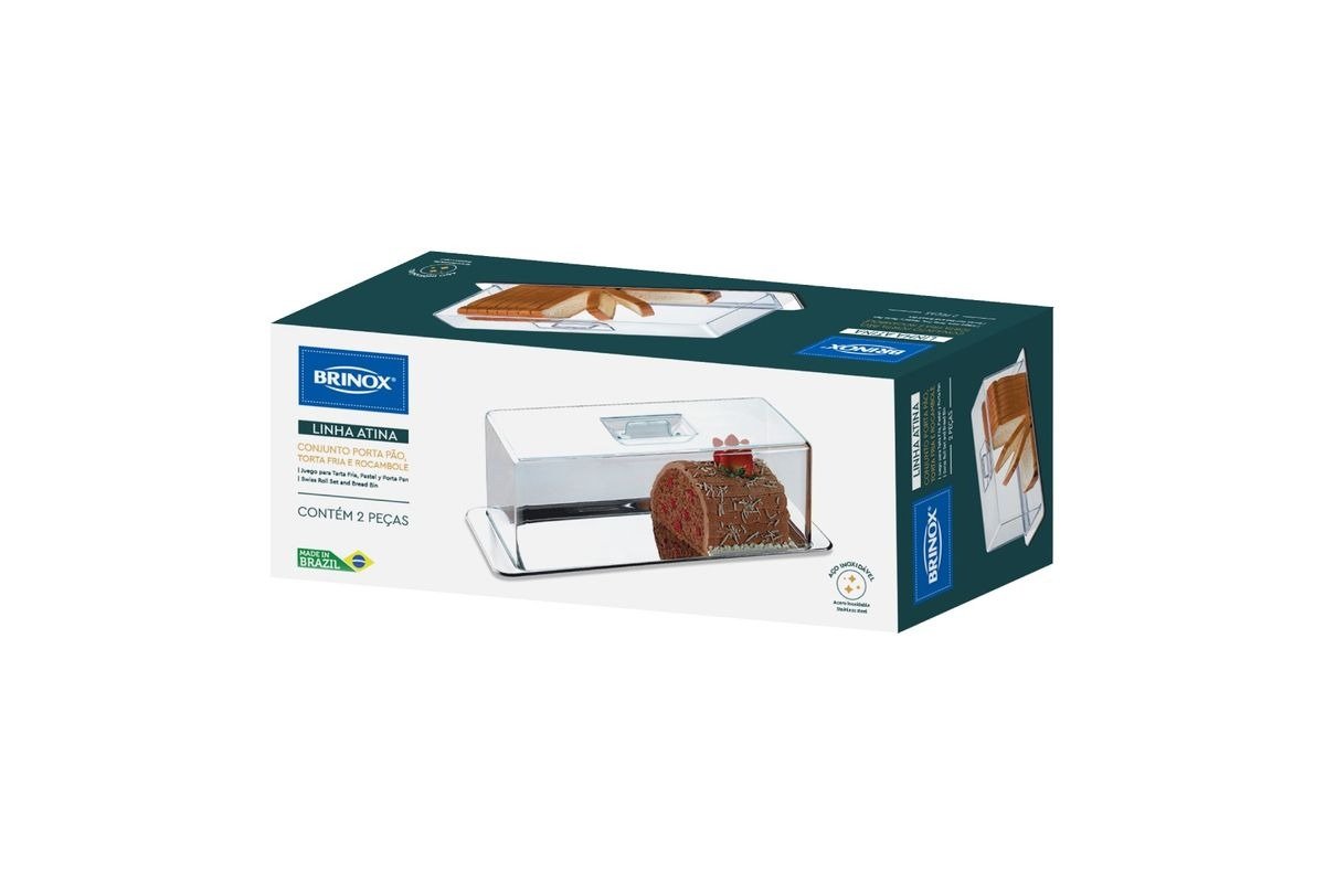 Porta Pão Rocambole e Torta Fria Inox Atina 2 Peças 40x16cm