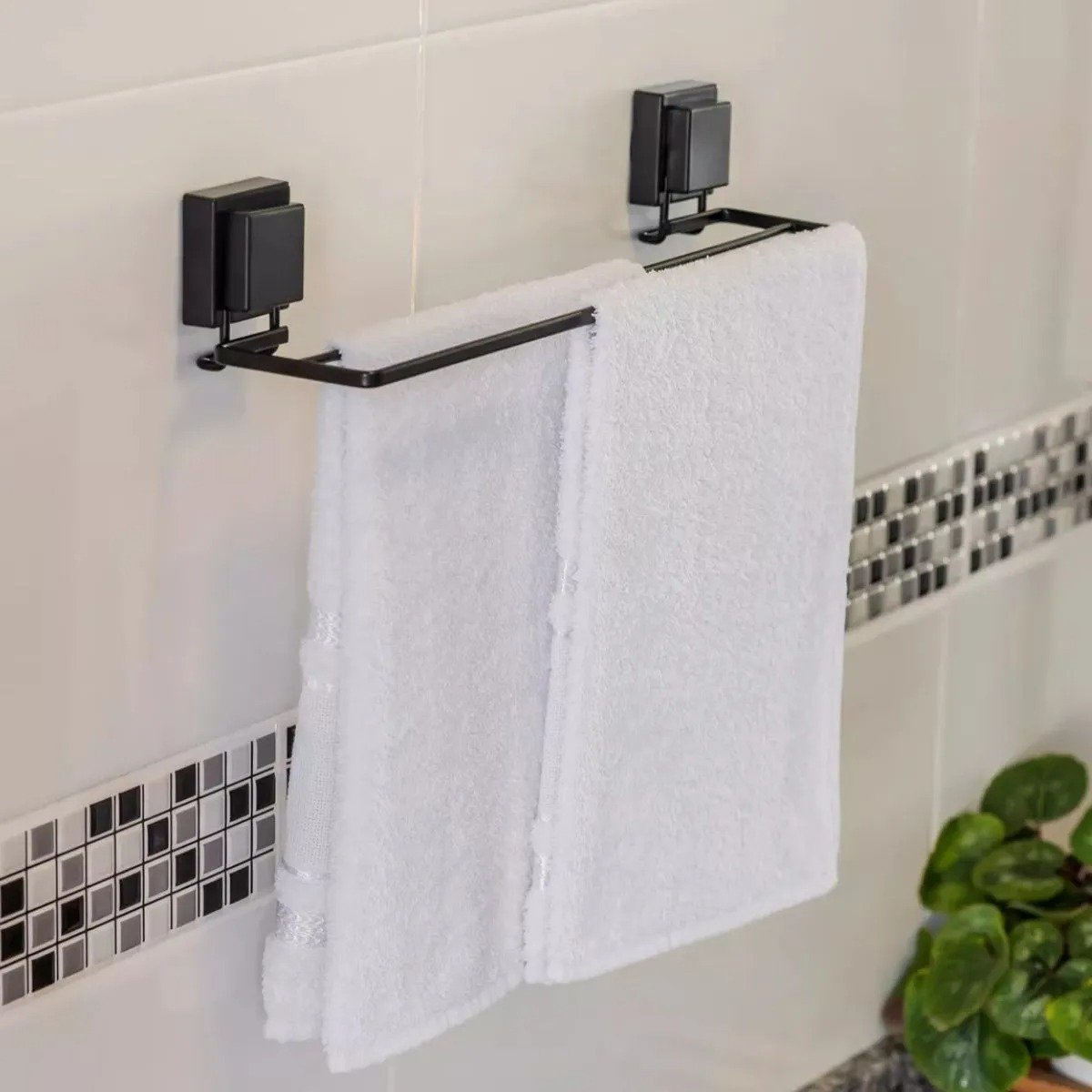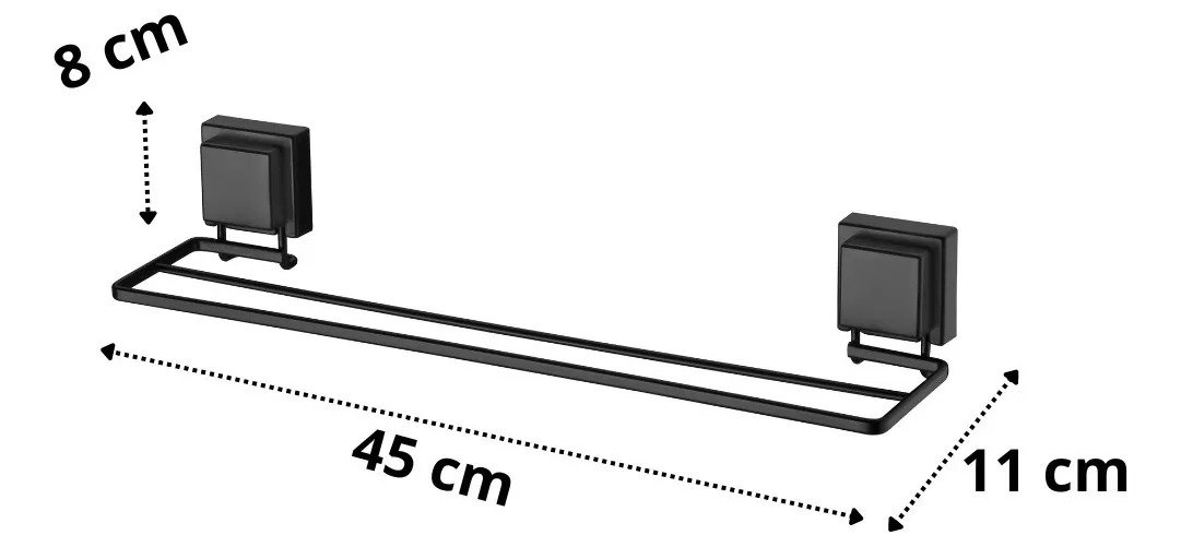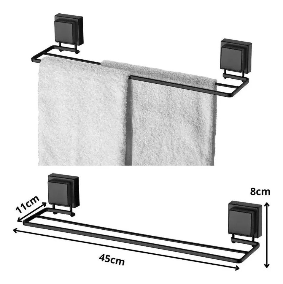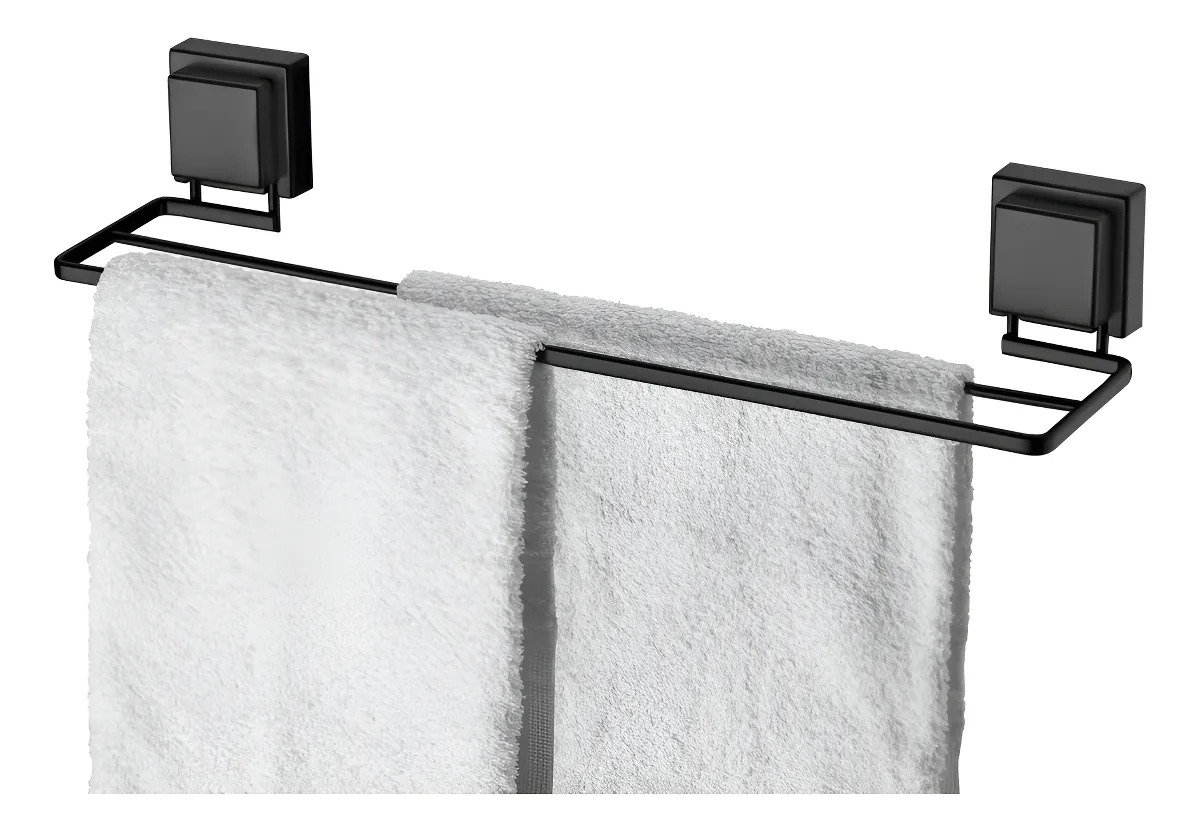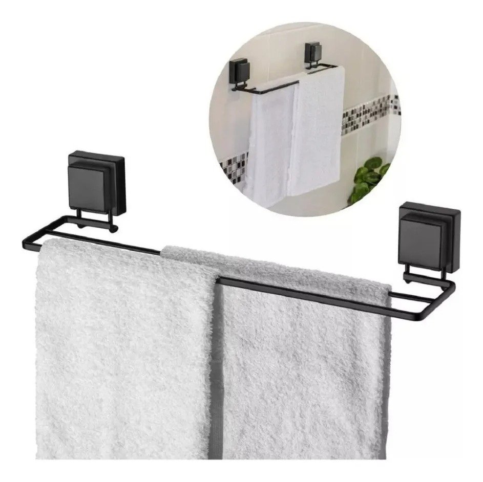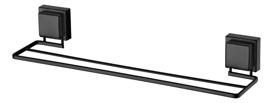 Porta Toalha Toalheiro Duplo Com Ventosa Preto Fosco Future