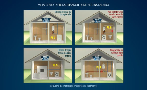 O produto acrescenta 9 mca (metros de coluna d'água) a rede hidráulica e é indicado para utilização com aquecedores de água a gás e sistemas hidráulicos domésticos. O PL9 é construído com material altamente resistente a corrosão, além de possuir tela bloqueadora de resíduos.