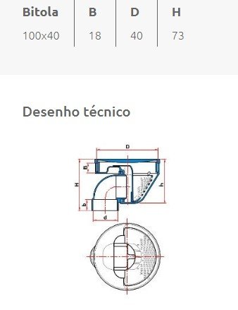 - Diâmetro Interno: Compatível com o tubo DN100 (prolongador) e saída DN40