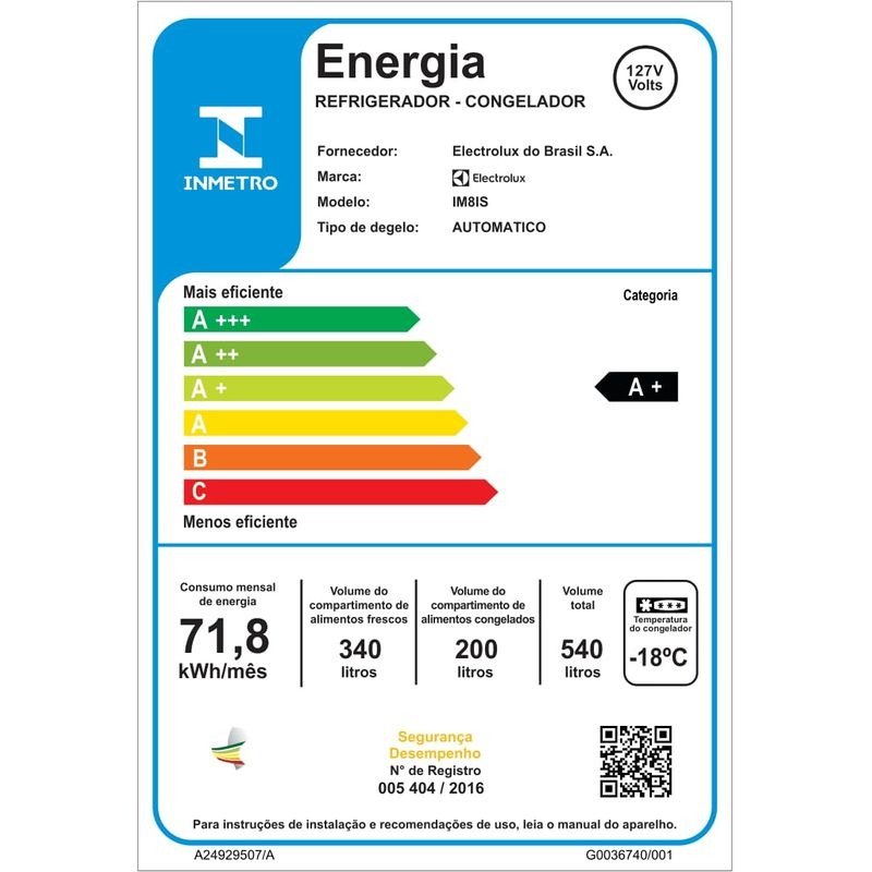 Selo de Eficiência Energética: Nível A+.