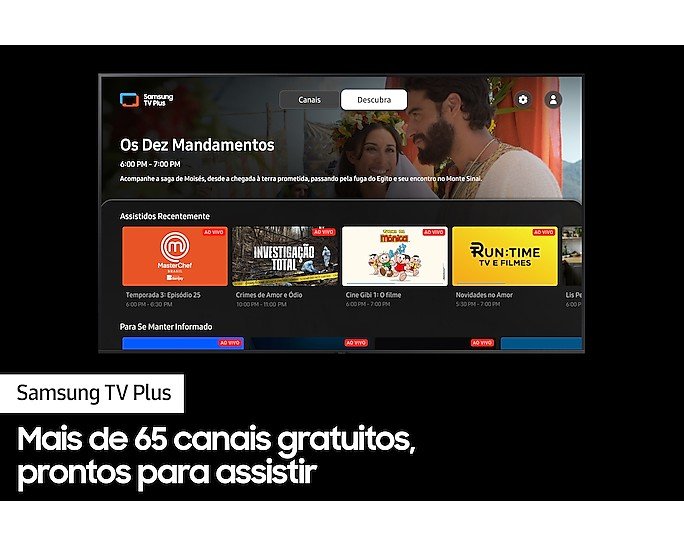 - Samsung TV Plus: Acesse mais de 65 canais gratuitos de filmes, notícias, conteúdo infantil, esportes e muito mais. Basta ligar a TV e começar a assistir, sem mensalidades!