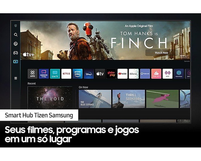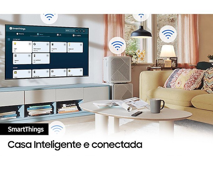- Smart Hub Tizen: Todos os seus filmes, programas e jogos em um só lugar, facilitando o acesso ao seu conteúdo favorito com uma interface intuitiva.