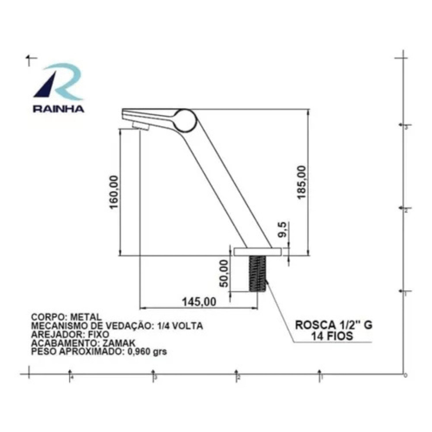 Torneira de Mesa para Banheiro 1017 C71 Requinte Cromado Rainha