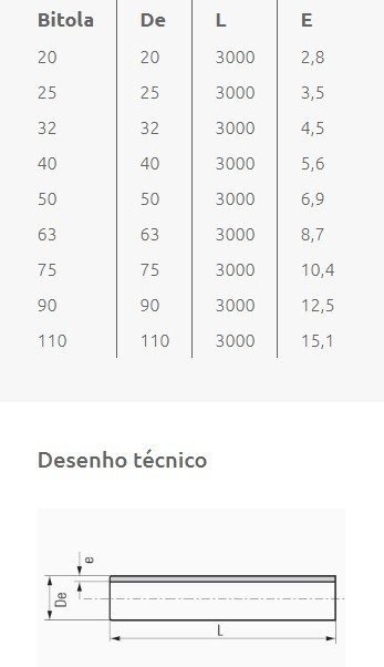Para envios por transportadora, o tubo será enviado cortado ao meio, em duas partes de 3 metros cada.