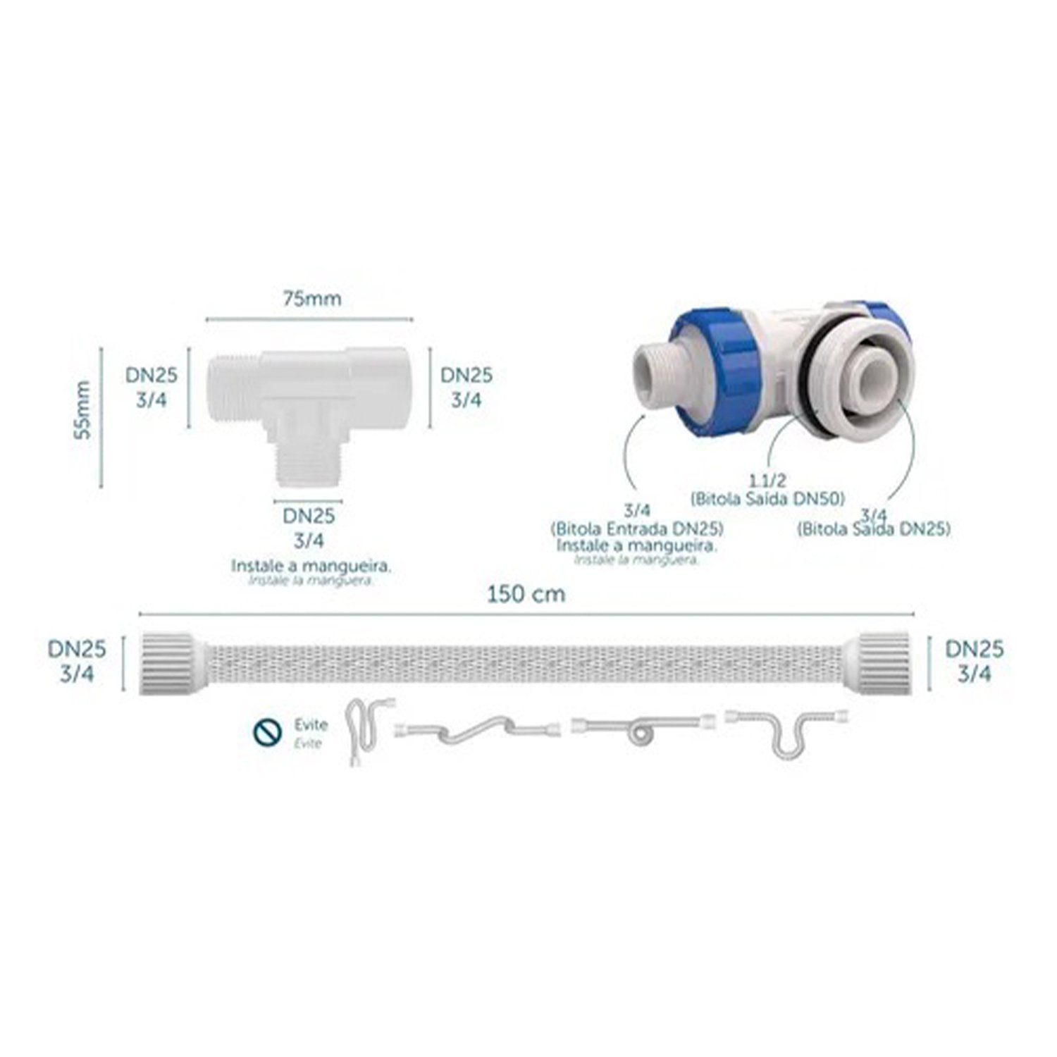 Para instalação, o tubo extravasor (ladrão) deve ter o diâmetro mínimo de 50mm.